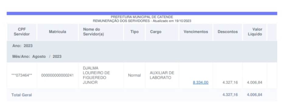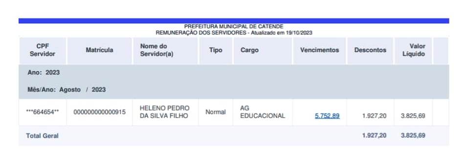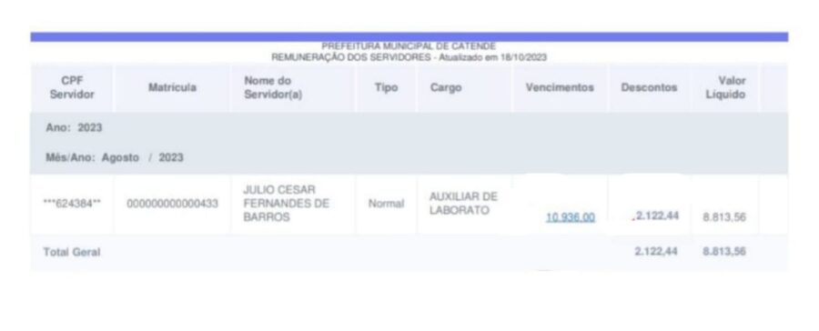 Por Danilo Duarte – Quatro vereadores da cidade de Catende, na Mata Sul de Pernambuco, estão na folha de pagamento da Prefeitura, mesmo recebendo também salários pela Câmara Municipal da cidade. A apuração feita com exclusividade pelo nosso site, mostra que os vereadores, Heleno Pedro (DEM), Djalma Loureiro (PTB), Cesar Barros (PSC) e Marcílio da Saúde (DEM), faturam, além dos R$ 15 mil reais que recebem pelo legislativo, salário do executivo sem trabalhar. Os valores variam entre R$ 5.752,89 e R$ 10.936,00 reais.
