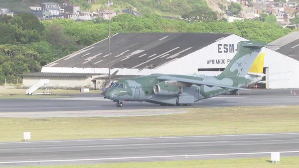 A aeronave é a KC-390 Millennium, que é utilizada para o transporte de cargas. Por isso, o número de passageiros é menor que o dos outros dois voos, em que chegaram ao Brasil 422 repatriados, sendo 211 em cada voo.