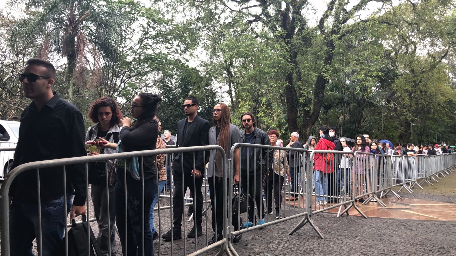 Os primeiros admiradores chegaram ao local por volta das 5h e enfrentaram uma leve chuva enquanto aguardavam na fila.