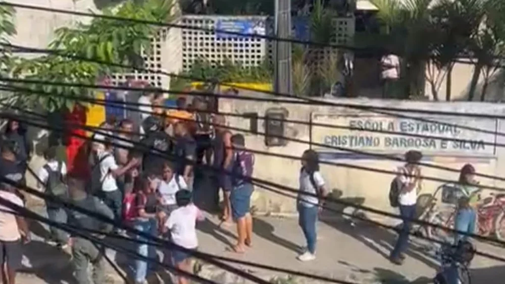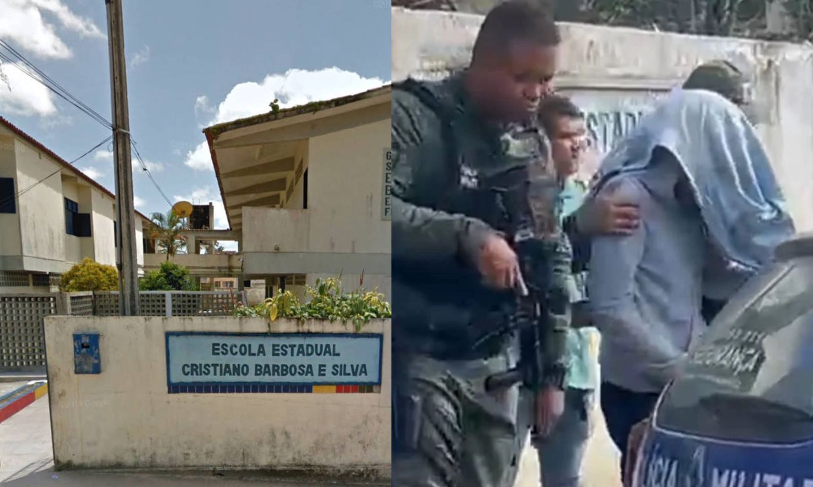 Imagens que circulam nas redes sociais mostraram o momento de pânico e correria. O adolescente suspeito, com capuz na cabeça, aparece sendo levado para uma viatura da Polícia Militar. A faca usada no ataque também foi apreendida.