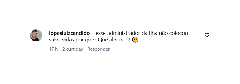 Outro comentário, de @helpribeiro, criticou os custos: “Se paga uma taxa de permanência tão cara. Deveria ao menos garantir um pouco de segurança aos banhistas.”