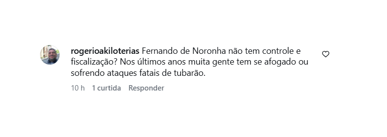 O seguidor @rafaelamorim destacou os riscos naturais: “Noronha não tem praia, lá é o oceano acessível aos banhistas… dois passos e você tá numa profundidade perigosa. Investem em tudo menos no hospital! É um paraíso, mas pode se tornar um pesadelo.”