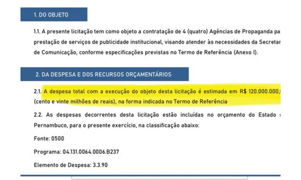 “No entanto, é imoral exigir algo que, de cara, impeça a participação da grande maioria das agências pernambucanas, que geram emprego, que pagam impostos e que não poderão ter a chance de disputar a maior conta publicitária do Estado de Pernambuco”, diz outra fonte sobre a questão.