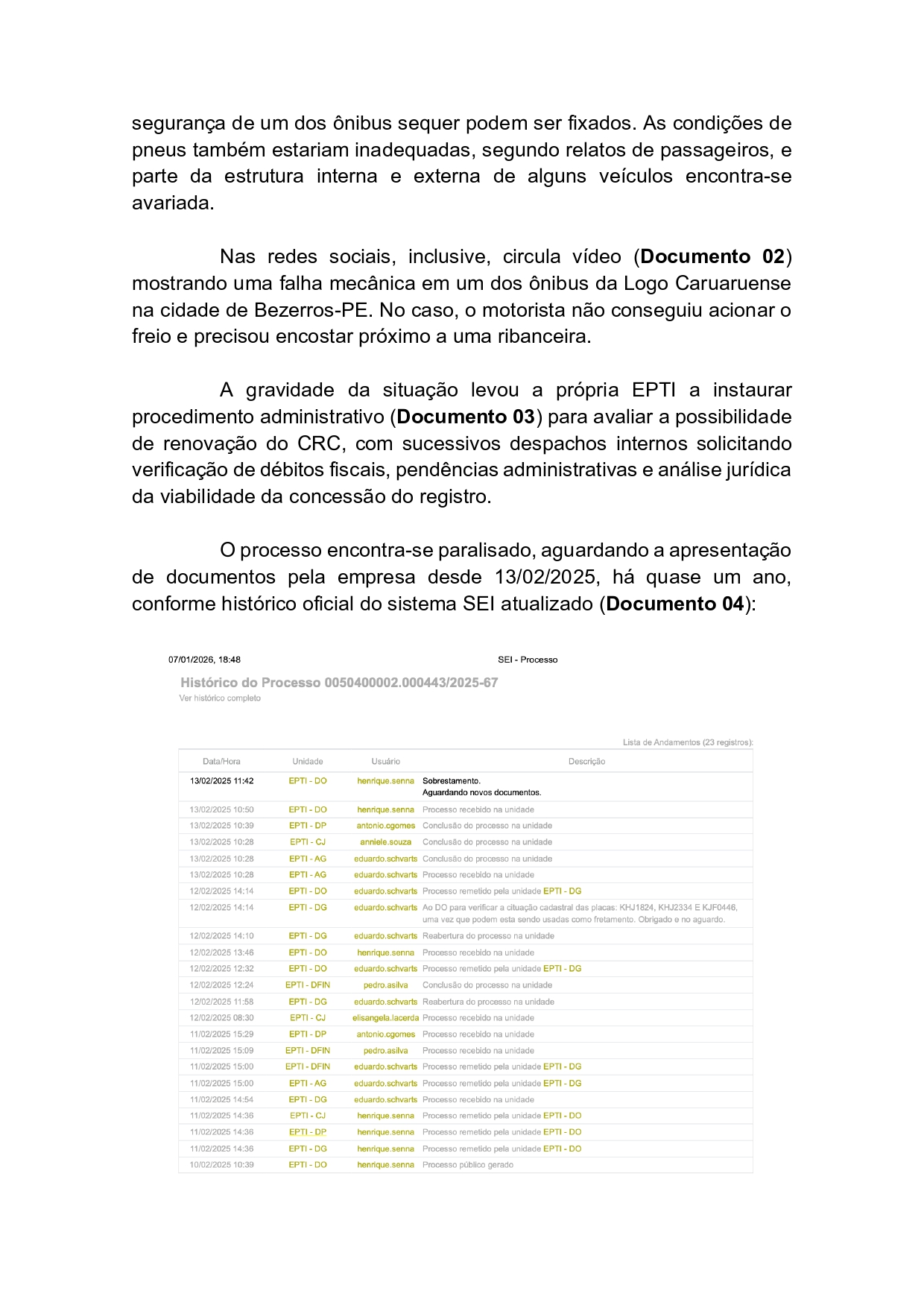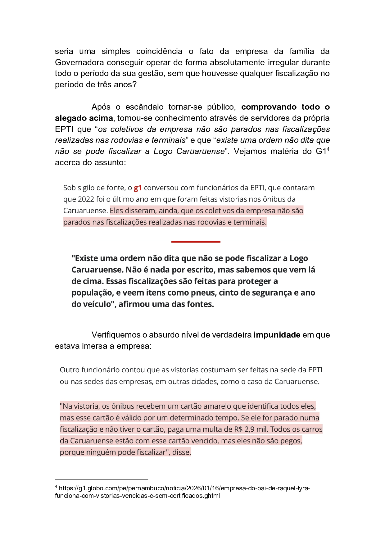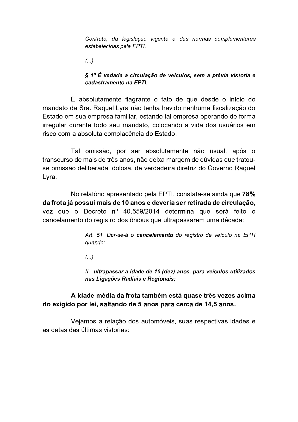 O pedido se deveu às denúncias de falta de fiscalização da empresa de ônibus do pai da governadora, o ex-governador João Lyra, a Logo Caruaruense, fechada na sexta-feira (16). Romero Albuquerque, também oposição ao governo, justifica o pedido de impeachment por favorecimento, prevaricação e advogacia administrativa.