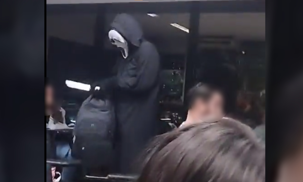Nas imagens, é possível ver o jovem vestido todo de preto, com uma máscara que remete aos filmes de terror e, em seguida, já detido pelos seguranças da Unibra. Até o momento da publicação desta reportagem, não houve registro de feridos.