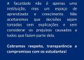 Ressaltamos que não estamos solicitando privilégios, mas sim condições mínimas e dignas para nossa formação. Queremos respeito! Não somos meros números em um sistema que visa apenas lucro, mas sim futuros médicos que necessitam de ensino de qualidade para exercer sua profissão com responsabilidade e competência.