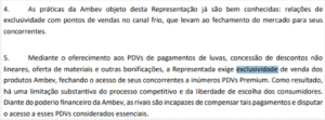 Segundo a especialista, a “liberdade de escolha do consumidor” é um direito básico, sendo as cláusulas de exclusividade, que limitam a venda a uma única marca, prejudiciais à diversidade de oferta, aos consumidores e comerciantes.