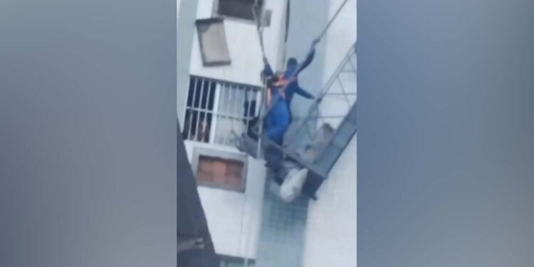 Da Redação do Blog – Um andaime despencou, deixando dois trabalhadores pendurados no alto de um prédio no bairro do Espinheiro, na Zona Norte do Recife. Imagens mostram os funcionários, que estavam trabalhando na fachada do edifício, se segurando na estrutura, que ficou suspensa em frente à janela de um apartamento. O acidente aconteceu na tarde de quarta-feira (18), na Rua do Espinheiro.