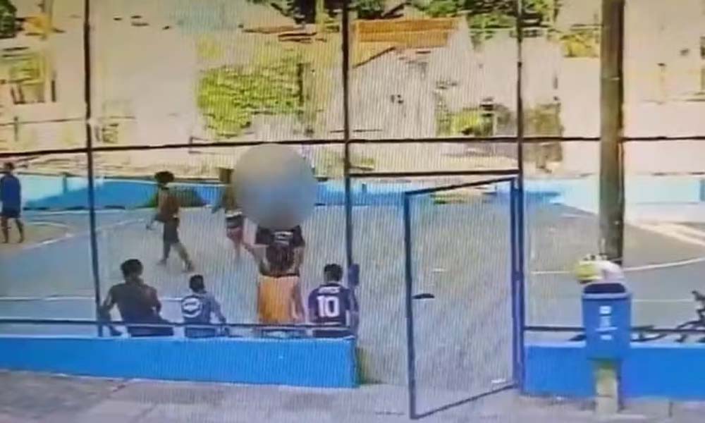 Segundo a Polícia Civil, o caso aconteceu no domingo (14), na Praça do Trabalho. Pelas imagens, é possível ver a vítima, de regata amarela, sentada com mais três jovens numa mureta embaixo do alambrado enquanto outros rapazes jogavam bola na quadra.
