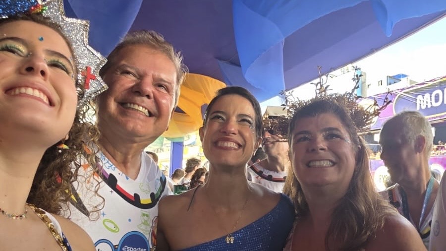 Entre os presentes, a governadora Raquel Lyra (PSD) e o prefeito João Campos (PSB) circularam pelo espaço, reforçando o clima institucional em meio à folia. Fotos registraram o ex-presidente do TJPE, Ricardo Paes Barreto, ao lado da esposa, Sandra Paes Barreto, em conversa com a governadora no camarote.