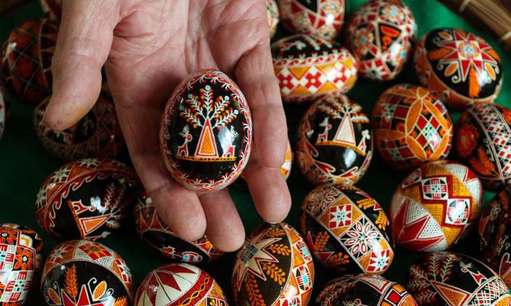 “As pessoas se presenteiam com ovos num símbolo de renascimento e benção. Antes disso, as pêssankas faziam parte da festa da primavera, realizada na mesma época. Eram dedicadas ao deus do sol, Dajbóh, e celebravam a passagem dos invernos rigorosos. O costume era enterrar os ovos em agradecimento às colheitas passadas e para trazer boas energias ao campo”.