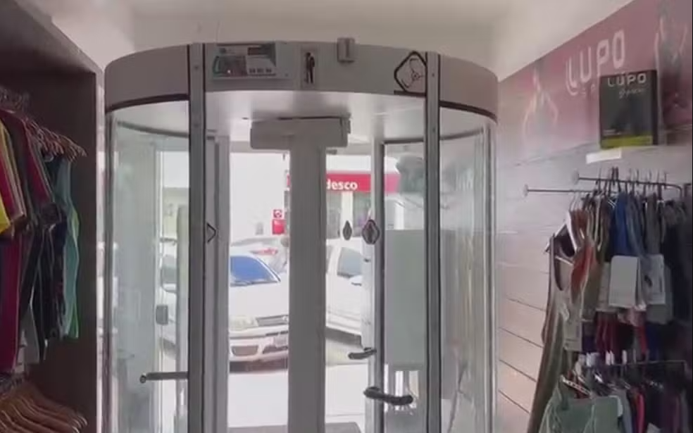 Do G1PE – Os clientes de uma loja de roupas e acessórios localizada em Escada, na Zona da Mata Sul de Pernambuco, se depararam com uma cena curiosa nas últimas semanas. Seguindo o exemplo das agências bancárias, o estabelecimento instalou uma porta giratória com detector de metais na entrada.