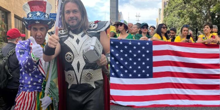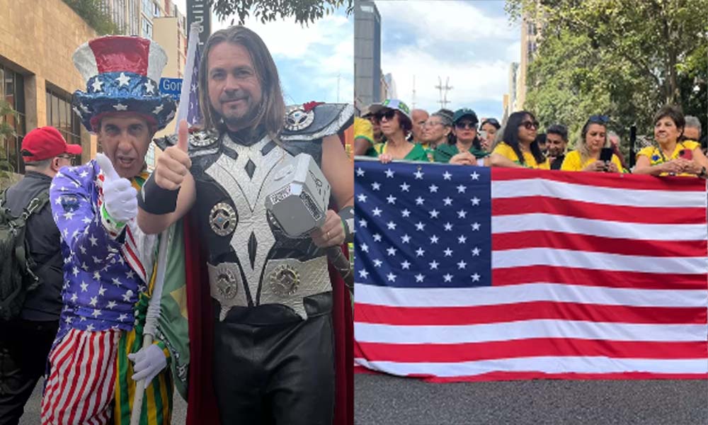 Do UOL — Sem a família Bolsonaro e sem o governador de São Paulo presentes, o ato bolsonarista na avenida Paulista hoje, em São Paulo, teve fantasias, provocações ao Supremo e apoio ao presidente americano Donald Trump.