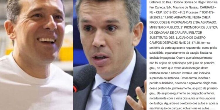 Vale lembrar que o juiz José Adelmo é sogro do advogado Genaldo Bezerra Filho, diretor da Fundação de Cultura de Caruaru. No site do Tribunal de Justiça de Pernambuco (TJPE) é possível acompanhar a tramitação do processo. Na quinta (15), saiu uma decisão do desembargador. O magistrado Luciano de Castro Campos alegou que o pedido para o parcelamento da caução “não foi objeto de apreciação pelo juízo de primeiro grau”. Ou seja, os empresários pediram para parcelar os R$ 800 sem seguir o que determina a lei e procuraram diretamente a segunda instância do Judiciário estadual.