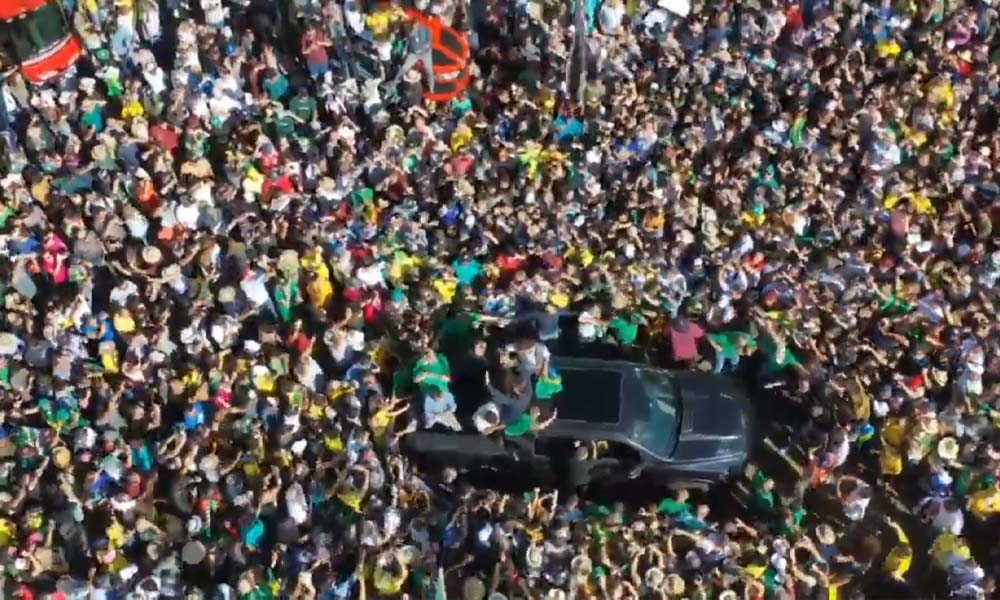 Da Redação do Blog — O ex-presidente Jair Bolsonaro (PL) foi recebido por apoiadores na feira de agronegócio Expodireto Cotrijal, em Não-Me-Toque (RS), nesta 3ª feira (05). Um drone registrou o momento em que ele percorreu o espaço da feira em cima de uma caminhonete.