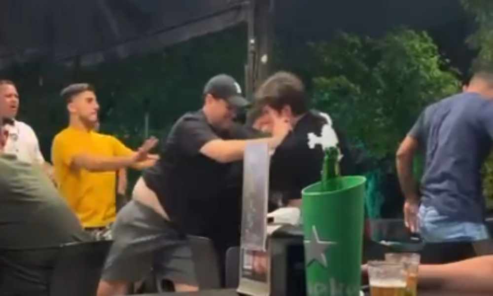 Em vídeo ao qual o Blog do Ricardo Antunes teve acesso, dois jovens de camisa preta aparecem agarrados, trocando socos dentro do bar. Garçons ainda tentam separar a briga, mas a situação piora quando um terceiro rapaz entra em cena, empurra um dos envolvidos e provoca um verdadeiro estrago: uma mesa cai, copos, garrafas de cerveja e taças de drinks se espatifam no chão. Carteiras e celulares de clientes voam, enquanto mulheres gritam em desespero.