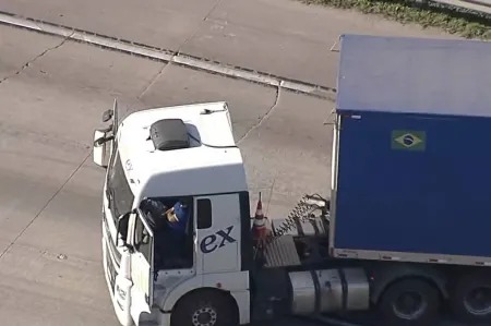 Veículo bloqueia totalmente a via no sentido Dutra da pista desde pouco antes das 5h30. Neste horário aconteceu o primeiro acionamento à Polícia Militar, que foi informada de que o motorista estava com “falas desconexas”.