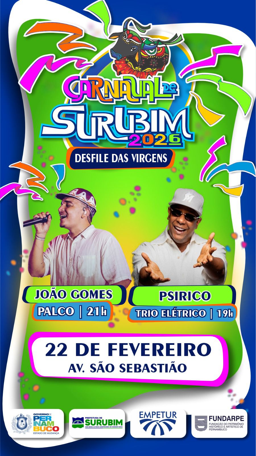 Da Redação do Blog – O Carnaval não vai acabar na Quarta-Feira de Cinzas (18). Ao menos em Surubim, no Agreste. Organizado pelo empresário Romildo Lima, a prefeitura da cidade, comandada por Cléber Chaparral (União), promove, de sexta-feira (20) a domingo (22), a tradicional festa, com shows e o Desfile das Virgens.