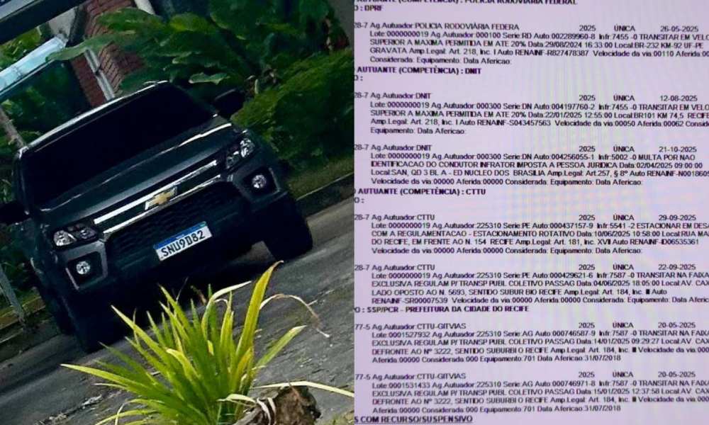 As multas que recebeu ao volante são as mais variadas, indo de excesso de velocidade aos limites da via na BR-232, em Gravatá, no Agreste, às 16h33 de 29 de agosto de 2024, a estacionamento irregular no Recife Antigo, às 10h58 de 10 de junho último.