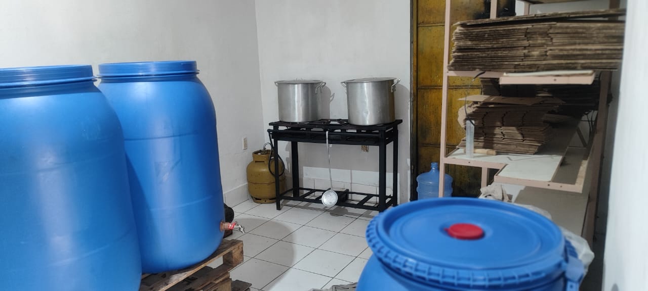 Foram apreendidos equipamentos de produção, como envazadora, fogão industrial e soprador térmico, além de rótulos falsificados, bebidas adulteradas e eletrônicos utilizados na atividade ilícita.