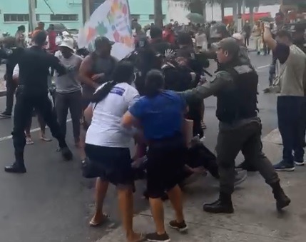 É possível observar agentes e manifestantes em meio a agressões, no meio da rua.