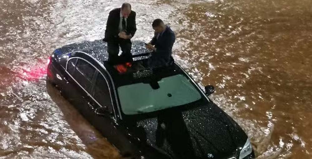 Cônsul dos Emirados Árabes é resgatado de enchente pelo teto solar de BMW, em SP