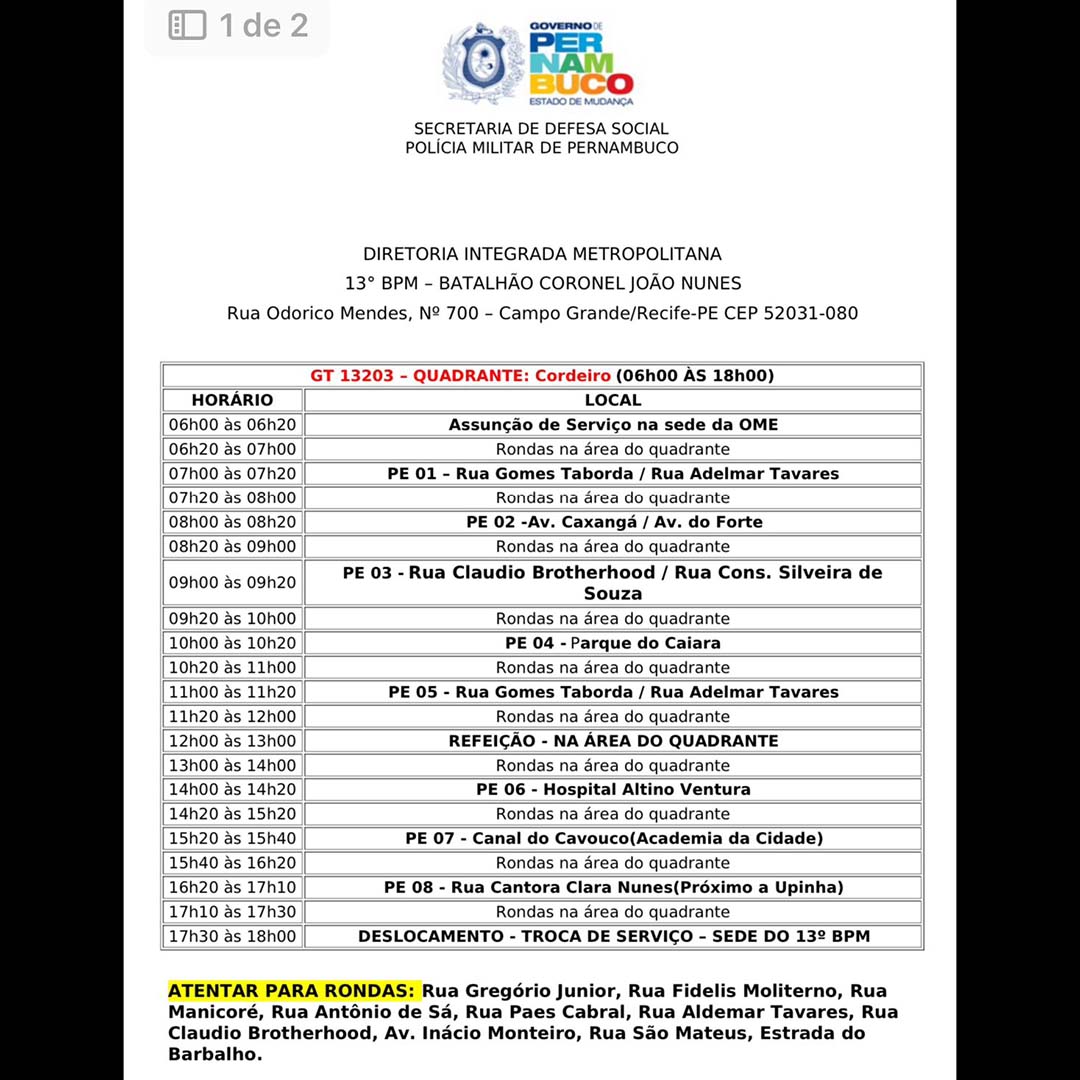 Ao notar que uma viatura da PM estava parada na frente de um estabelecimento comercial, no bairro do Cordeiro, e os policiais não estavam dentro dela, deu voz de prisão aos mesmos, determinando que fossem escoltados para a Delegacia de Polícia Judiciária Militar.