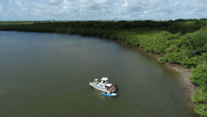 Pontua que são usadas dragas de última geração equipadas com sistemas de baixa emissão de CO2, rastreamento via satélite e sensores em tempo real, que, de acordo com o diretor de Sustentabilidade, garantem “rigor técnico, eficiência energética e precisão das operações”. A embarcação da dragagem dispõe de fiscais a bordo e a própria tripulação ajuda no monitoramento da fauna, enfatiza ele .