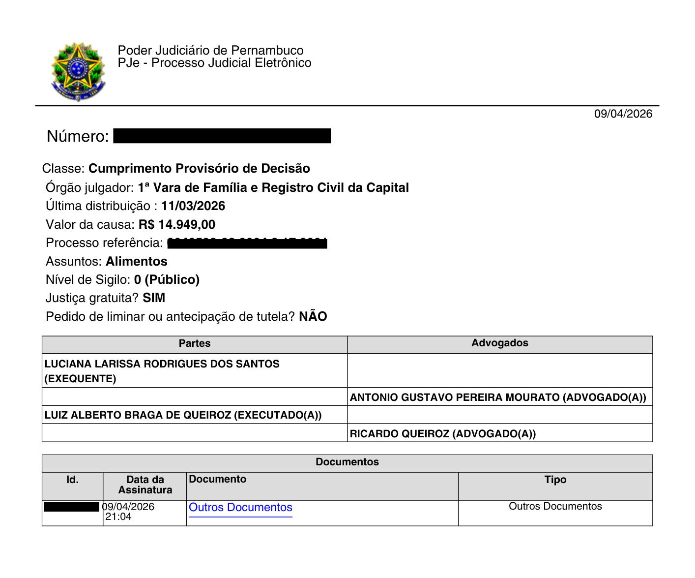 Por Ricardo Antunes – O delegado Luiz Alberto Braga de Queiroz, já réu por tentativa de homicídio contra um ilhéu em Fernando de Noronha enfrenta mais um problema na Justiça — desta vez na área cível. Ele é alvo de uma ação por não pagamento de pensão alimentícia, com pedido de prisão civil já apresentado.