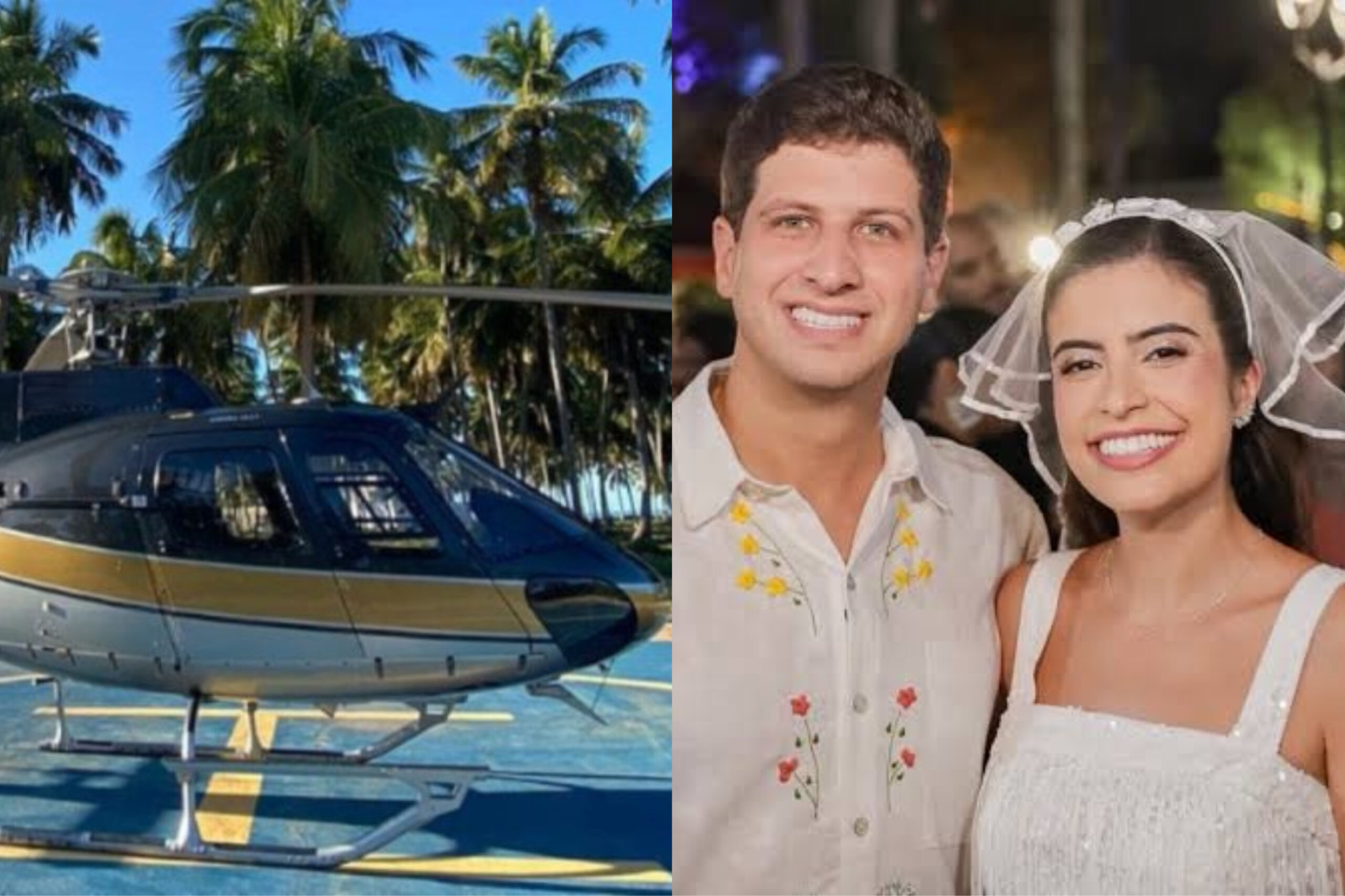 Depois do casamento, João Campos e Tabata Amaral voltam de helicóptero para o Recife