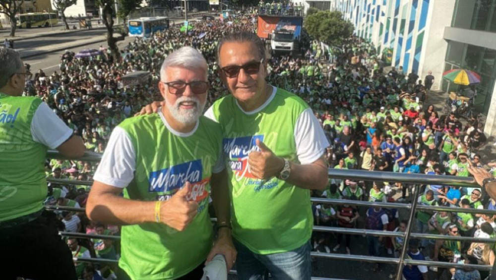 Os pastores Cláudio Duarte (esq.) e Silas Malafaia (dir.) na Marcha para Jesus no Rio de Janeiro
