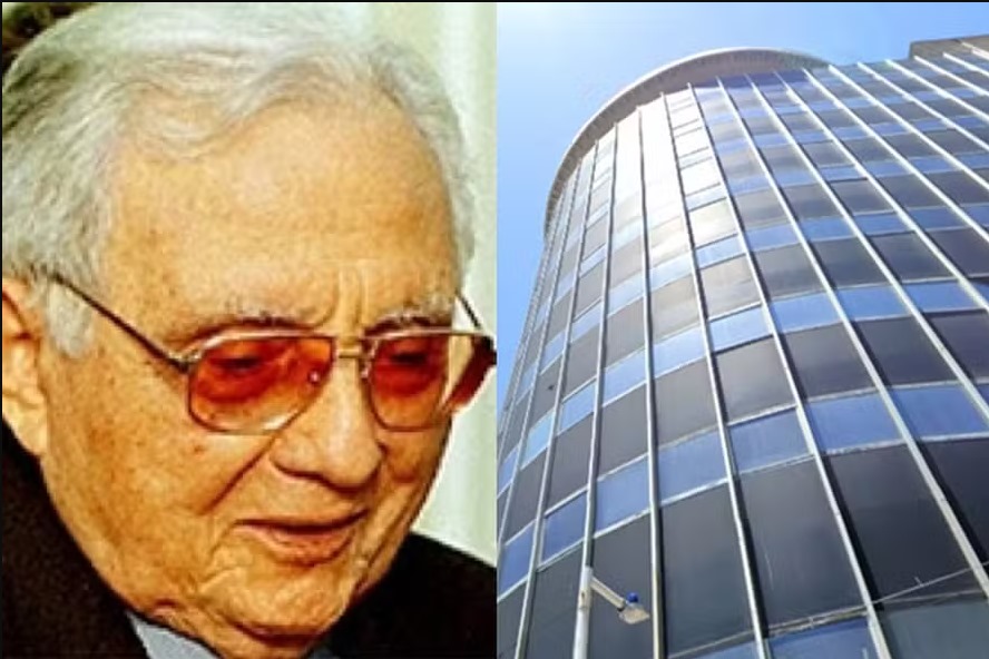 Fundador do grupo, João Campos (à esq.) e a sede do Cimentos Nassau (à dir) situada no Recife
