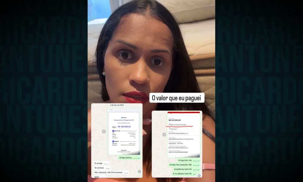 No vídeo explosivo em que Gicely classifica Lu e Gabriela como “gangue” e “bando de ladrões”, divulgado pelo Blog, a influenciadora, que tem 3,5 milhões de seguidores na plataforma TikTok, não cita nomes. Em outra gravação, contudo, mostra os comprovantes do pagamento da cuba, em nome de Gabriela Rocha Gouveia, feito em duas parcelas, uma de R$ 100 mil, outra de R$ 50 mil, esta última depositada em 2 de maio de 2024 no Banco Santander.