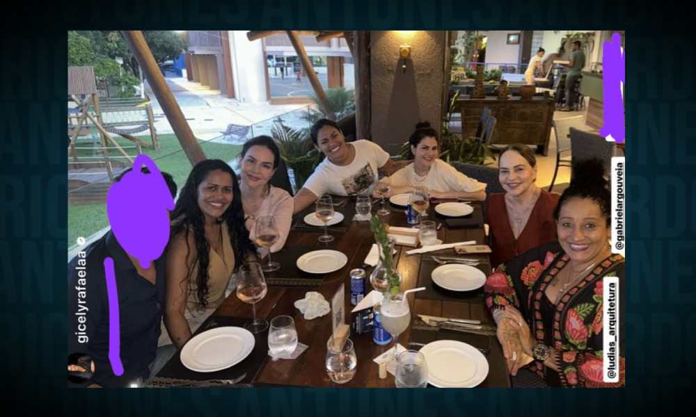 O quarteto aparece junto em registros nas redes sociais e Lu e Gabriela estão juntas em almoço com Gicely Rocha no Cabanga Iate Clube.