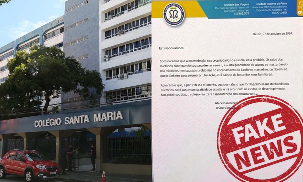 Da Redação do Blog – É absolutamente falso, e até risível, inclusive com erros ortográficos, comunicado atribuído à direção do Colégio Santa Maria, em Boa Viagem, na Zona Sul, um dos mais caros do Recife, reduto da classe média alta, proibindo masturbação masculina na escola.