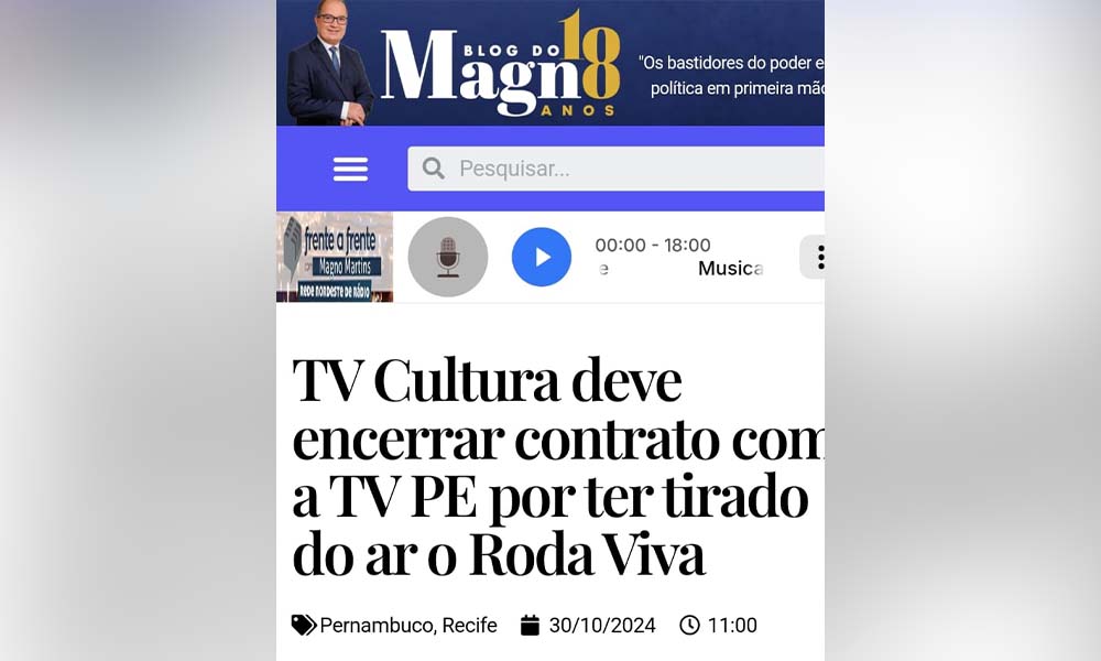Por André Beltrão — É fake news a informação do jornalista Magno Martins de que houve questão política para que a TV Pernambuco não exibisse o programa Roda Viva que teve o prefeito João Campos (PSB) como entrevistado. Campos e a governadora Raquel Lyra (PSDB) deverão ser adversários ma disputa do Governo do Estado, em 2026.