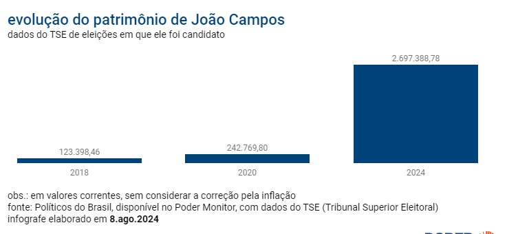 Leia abaixo a evolução patrimonial de João Campos, com dados do TSE, disponíveis no Poder Monitor: