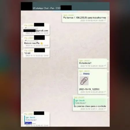 Mensagens entre Igor Jacob e o pai menciona “Corrup…”.