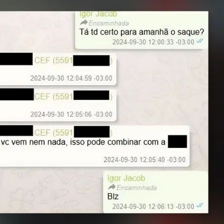 PF encontrou um pedido de reserva de dinheiro vivo para sacar no celular de Igor