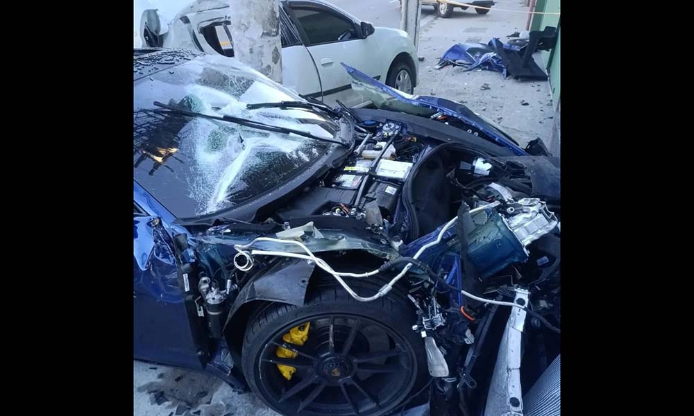 Por causa da alta velocidade, a frente do carro de luxo, avaliado em cerca de R$ 1 milhão e que foi abandonado no local, ficou completamente destruída, bem como a traseira do veículo da vítima.