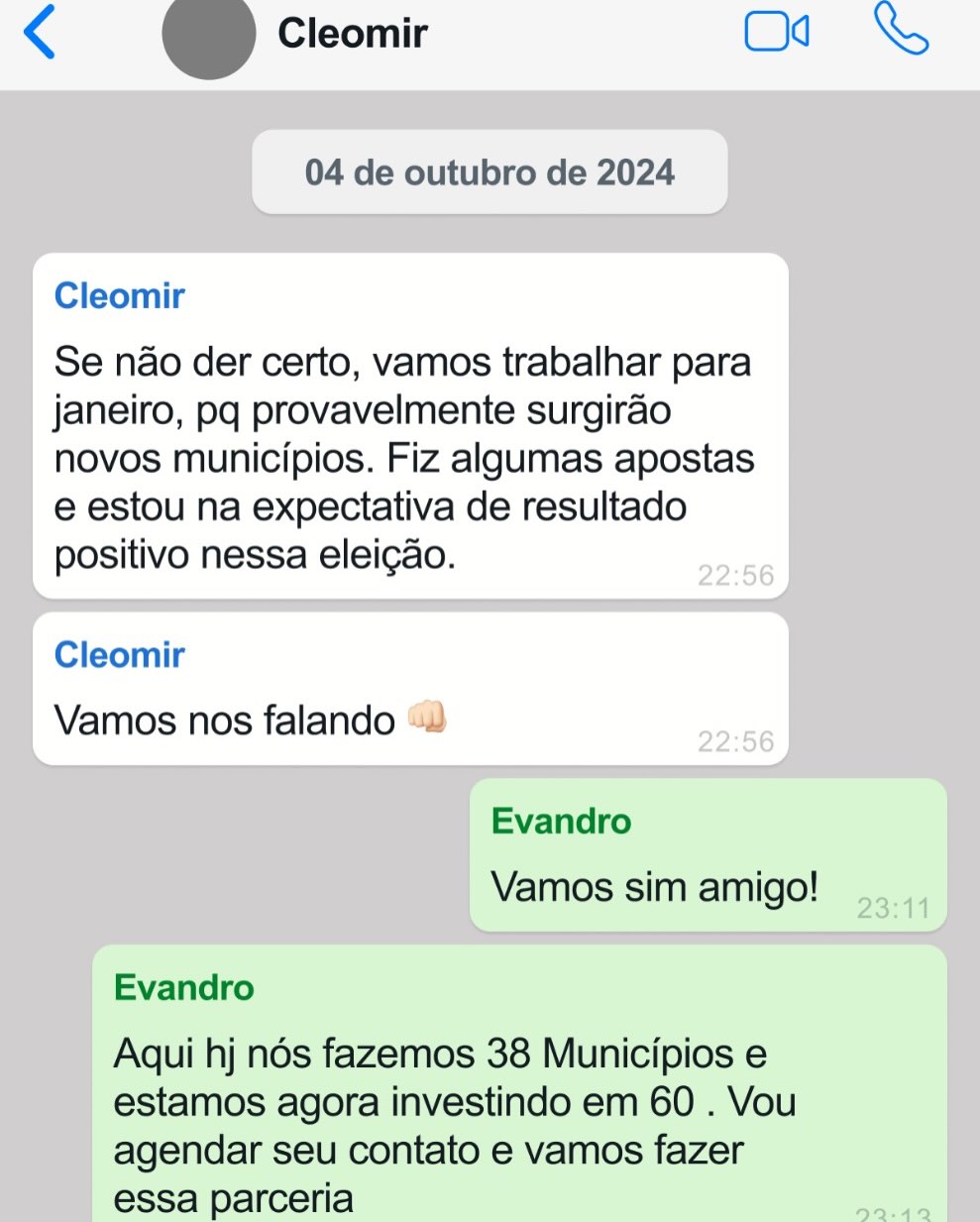Por Mirelle Pinheiro, do Metrópoles – Mensagens obtidas com exclusividade pela coluna Mirelle Pinheiro e atribuídas ao empresário Evandro Baldino do Nascimento, investigado em múltiplas fases da Operação Overclean, mostram afirmações de que ele teria comprado apoio de prefeitos na Bahia e que já teria “fechado” acordos com dezenas de prefeituras por meio de repasses em dinheiro.