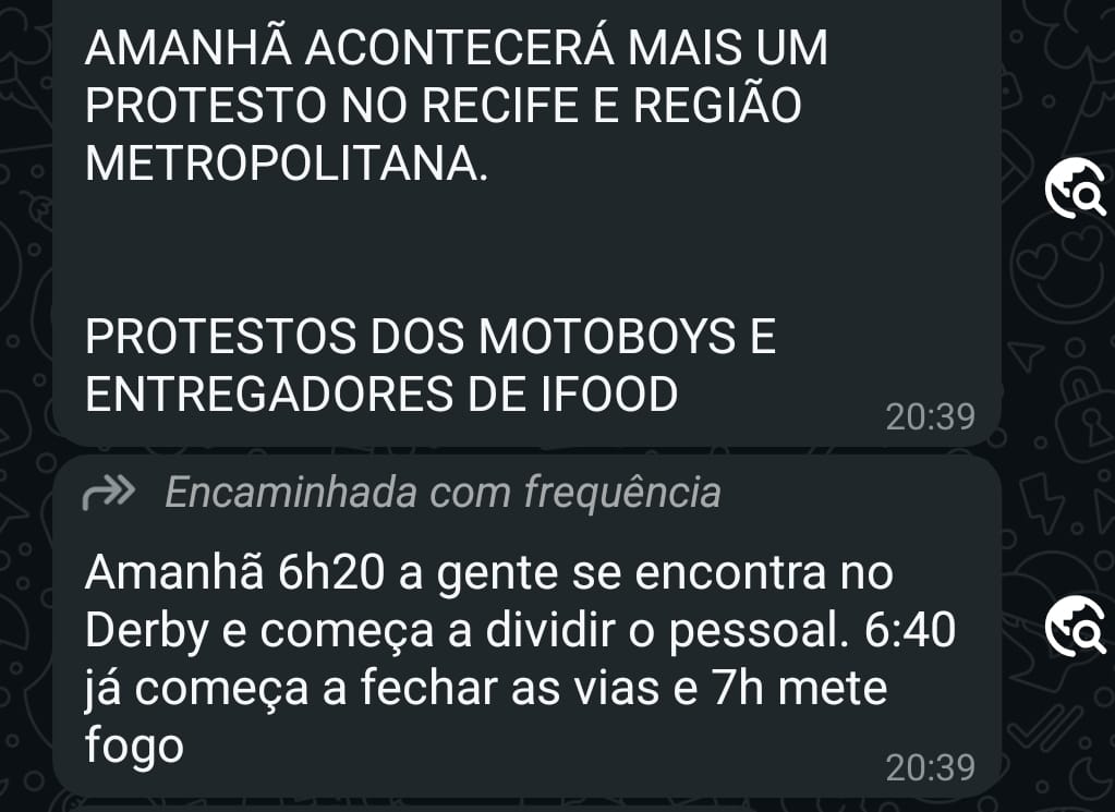 Da Folha PE — Grupos independentes de motociclistas que atuam com entregas e transporte por aplicativo planejam uma série de protestos para a manhã desta quarta-feira (20).
