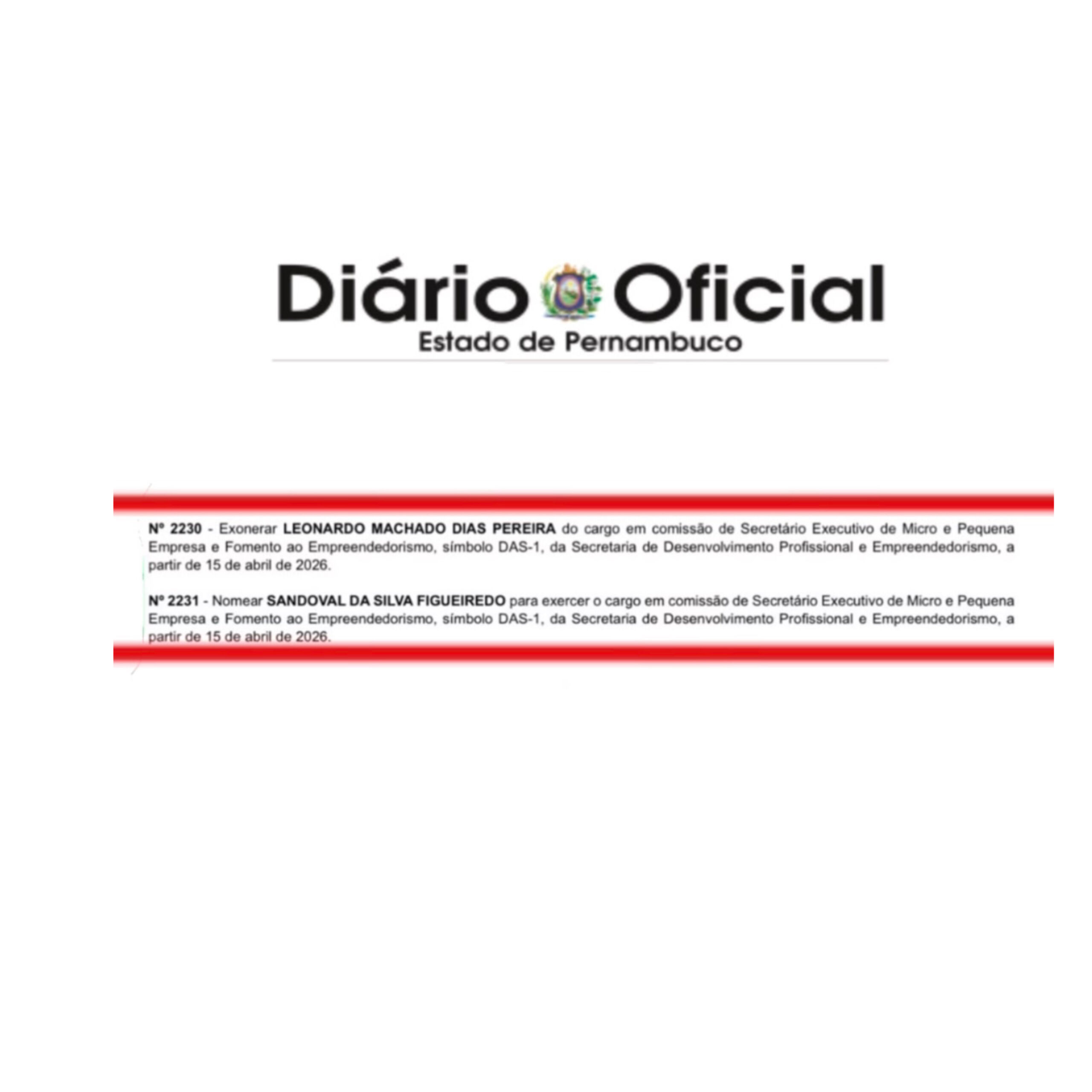 Da Redação do Blog – O ex-deputado do PSB, Leonardo Dias, que ocupava a secretaria-executiva de Micro e Pequena Empresa e Fomento ao Empreendedorismo foi demitido do governo Raquel Lyra. A exoneração foi publicada no Diário Oficial dessa quinta-feira (16).