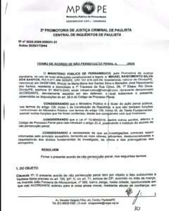 Da Redação do Blog – Considerado culpado por desvios superiores a R$ 200 mil na empresa de festas infantis Planeta Alegria Park, seu ex-gerente, Mikael Nascimento Silva dos Santos, 29 anos, firmou acordo com o Ministério Público de Pernambuco (MPPE) pelo qual cumprirá pena de serviços comunitários por dois anos, à razão de quatro horas semanais.