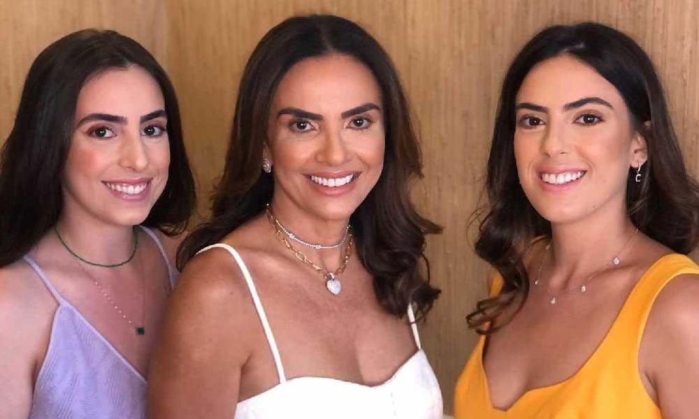 A arquiteta Kátia Peixoto (C), com as duas filhas, tem três pousadas de alto luxo em Noronha