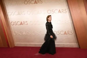 A brasileira Fernanda Torres, que concorreu ao Oscar de Melhor Atriz pela sua atuação no filme Ainda Estou Aqui, usou um vestido de gala preto e brilhante da grife francesa Chanel no tapete vermelho do teatro, em Los Angeles, onde aconteceu a cerimônia.