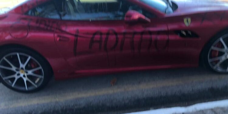 Quem passou pela orla de Maceió na manhã desta sexta-feira (1º) foi surpreendido ao ver uma Ferrari vandalizada, com as palavras ‘corrupto’ e ‘ladrão’. O veículo foi retirado do local por um guincho do Departamento Municipal de Transporte e Trânsito (DMTT).