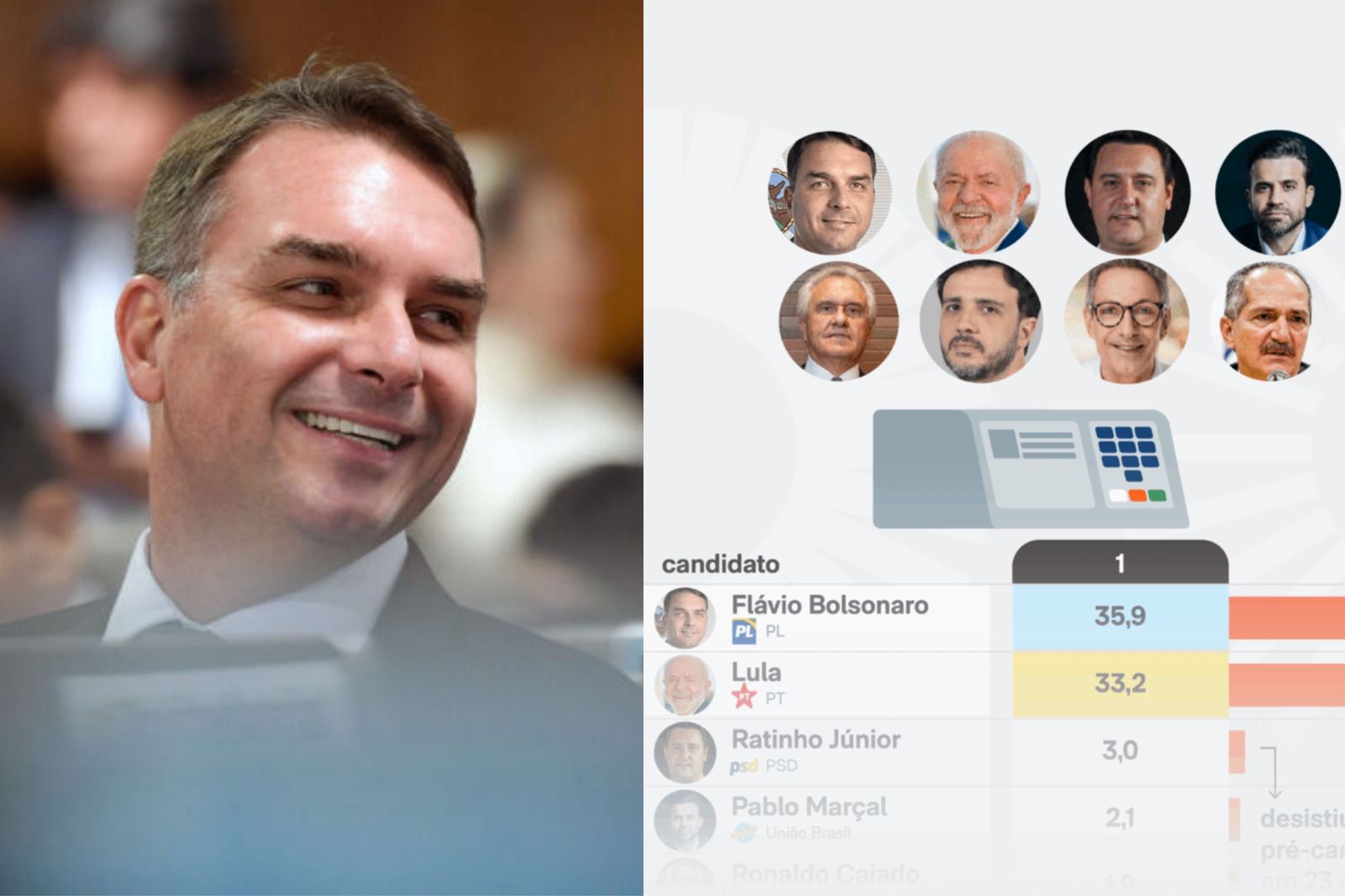 O levantamento mostra o primogênito do ex-presidente Jair Bolsonaro (PL) com 35,9% das intenções de voto, enquanto Lula registra 33,2%. A margem de erro é de 1 ponto percentual, para mais ou para menos.