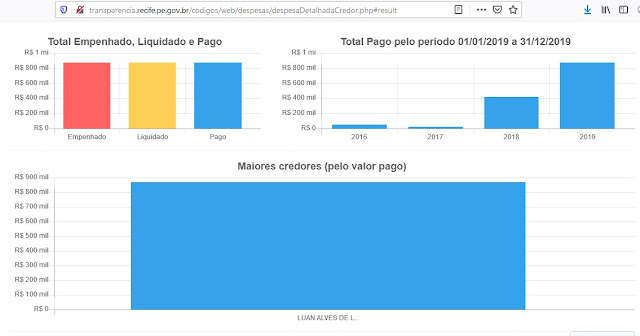 Consulta feita pelo Blog ao Portal da Transparência da Prefeitura do Recife, para a Lua Produções Ltda, que teria sido beneficiada por 117 processos de inexigibilidades para o Ciclo Carnavalesco 2019, com a finalidade de representação artística, revelou que os pagamentos a essa empresa, por eventos, apenas no ano de 2019, chegaram a R$ 2,8 milhões. Em 2018, foram pagos R$ 2,2 milhões, ao passo que em 2017, o valor foi bem inferior, R$ 785 mil. Apesar de faturar quase R$ 3 milhões em apenas um ano e apenas da FCCR, a Lua, que tem sede no Recife, tem Capital social reduzido. Segundo a Receita Federal é de apenas R$ 100 mil.