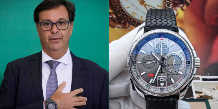 Ao Estadão, Gilson Machado disse que o relógio que ganhou de presente é da Chopard, mas negou usá-lo. “Faz 15 anos que uso esse aqui”, disse, ao enviar uma foto com um relógio da Aqua, encontrado por R$ 65.